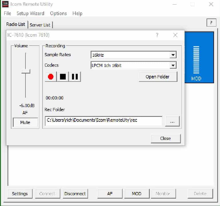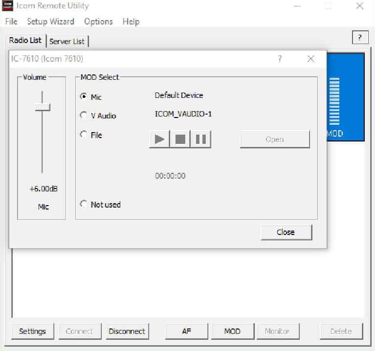 • Having MONITOR enabled on the Icom 7610 will create an echo when transmitting using remote software.