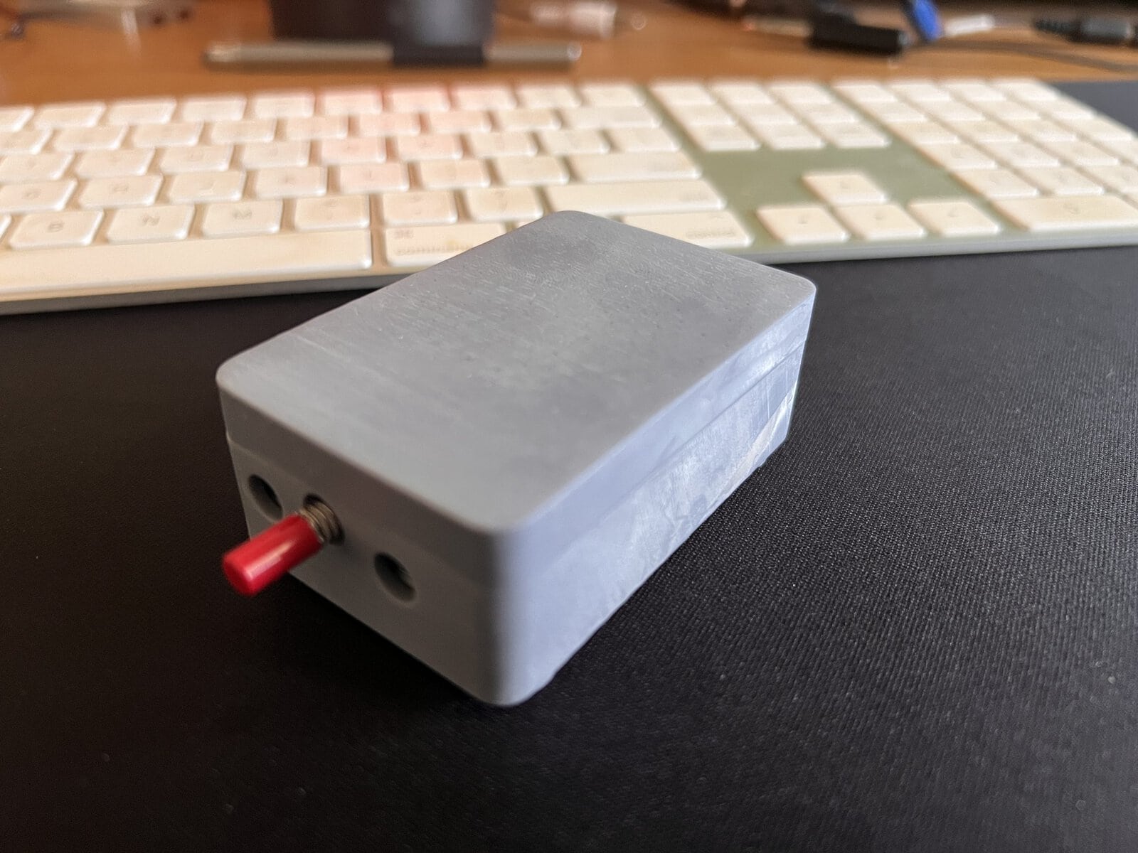 MuteMate with case. V1.0-rc1 without case.